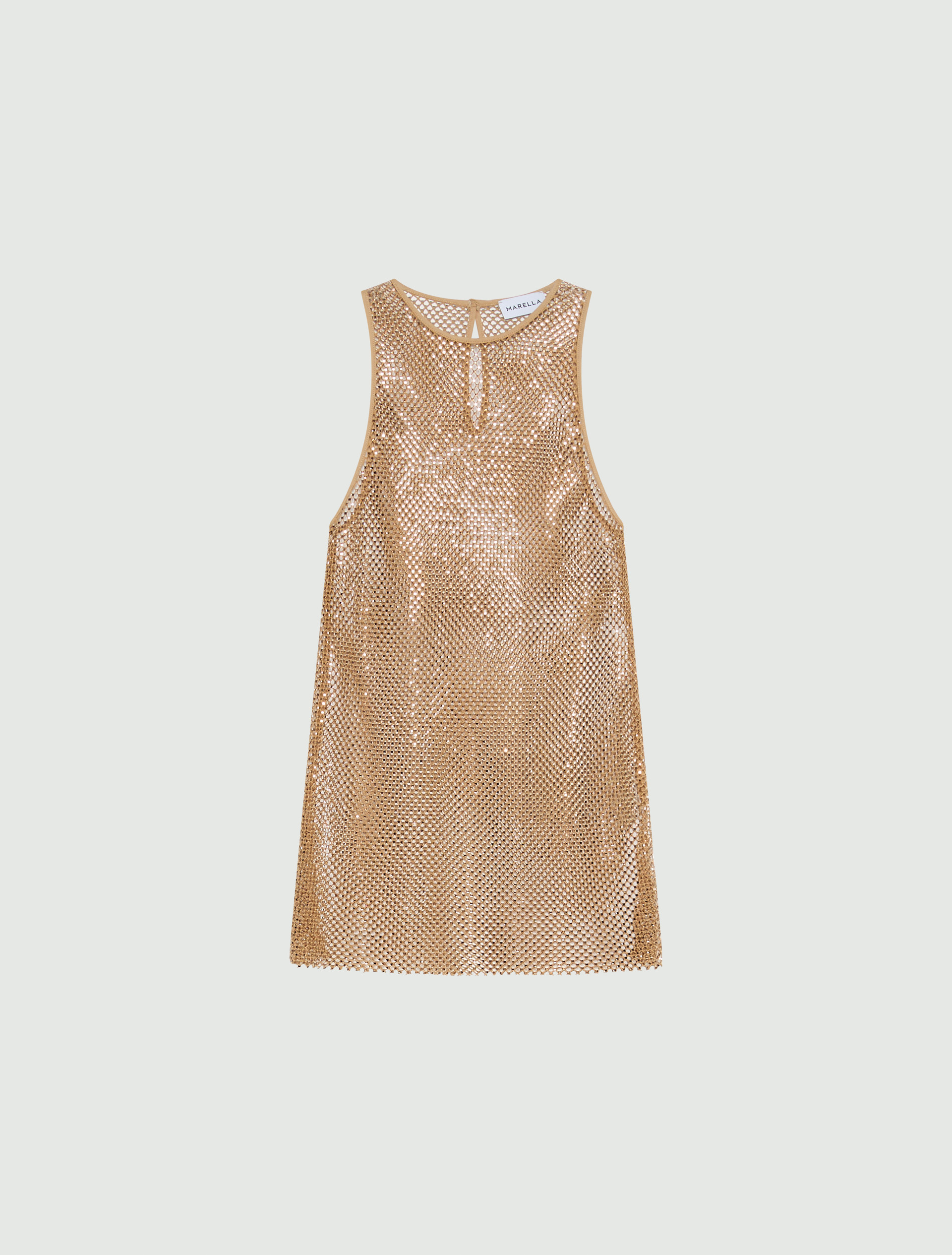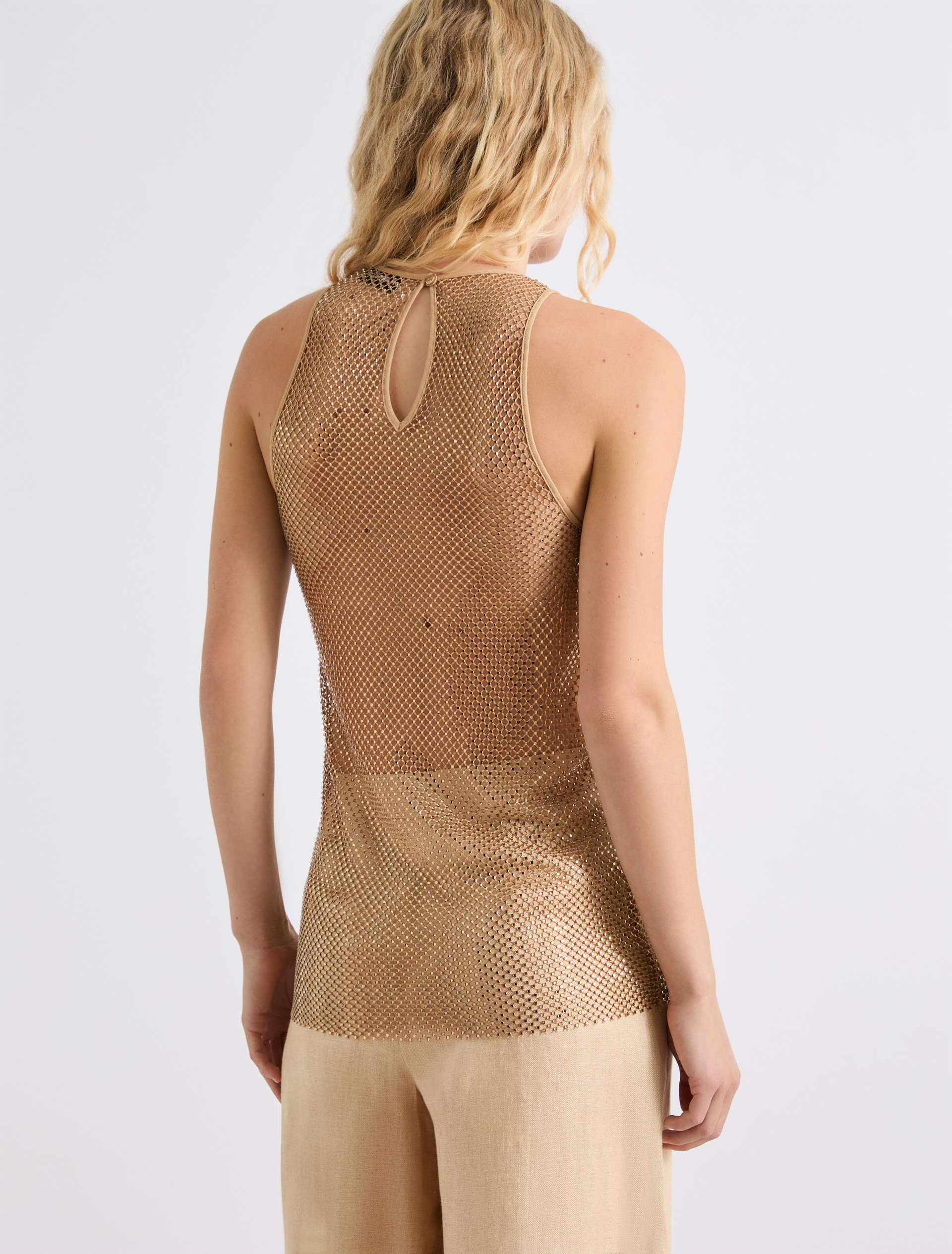 Rhinestone-adorned mesh top - BEIGE